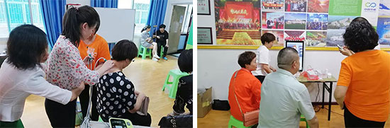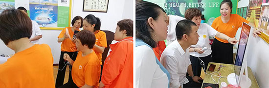 分公司培训师为现场新时代人详细讲解了健康设备的操作使用要点及注意事项,带领大家一起体验了扶阳罐、负压理疗仪、皮肤检测仪、耳穴探测仪等健康设备,获得了现场参与者的高度认可。
