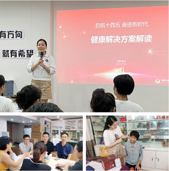 宣讲过程中,分公司员工结合7·18发布的健康解决方案及居民的健康状况和需求,有针对性地对骨骼健康、通经活络、肠道养护等内容进行了详尽的描述,并为大家提供了健康监测与服务体验,有效地将健康服务设备搭配其中,让大家加深了解,更加坚定了发展市场的信心。