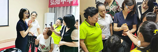 国珍健康生活馆志愿者运用扶阳罐、负压理疗仪、五藏炙等设备,为社区居民提供健康服务,传递健康理念。