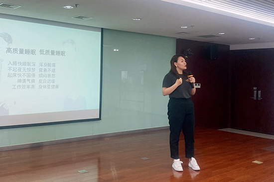华尚健康员工为大家介绍了“健康好睡眠——八时享乳胶床垫”,让大家对公司电商的优质产品和健康产业的发展前景有了更加深刻的认识。