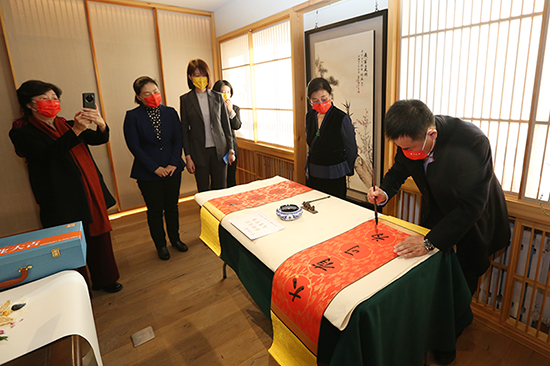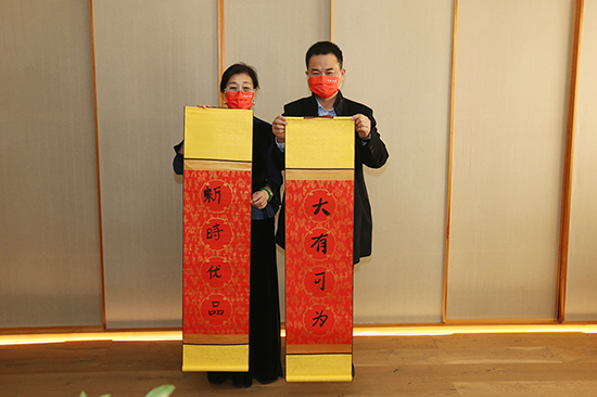 随后,杨少华副总经理、王宝玉总监、李恩泽主任、荆金梅女士、许亦青女士为新店开业剪彩。荆金梅女士和杨少华副总一起为新时优品健康管理服务中心写下“新时优品 大有可为”的祝福语,并与大家合影留念。