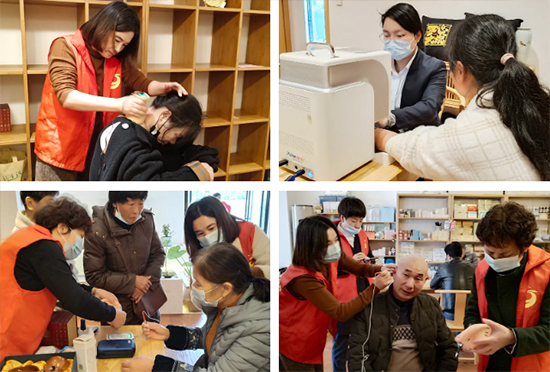 活动中,分公司员工及志愿者们运用脉诊仪、耳穴探测仪和扶阳罐等健康设备为新时代人进行健康监测服务,同时结合健康报告提供个性化健康解决方案,该方式受到大家的高度认可。
