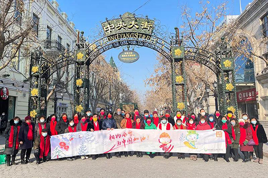 1月19日,新时代人在美丽的中央大街举办畅走活动,为冰雪盛事加油,为新时代加油。