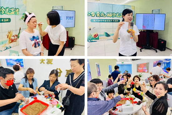 分公司讲师为大家带来即将上市新品的相关课程,通过示范带领大家体验,并分享了端午节习俗。大家一起制作香囊,品尝粽子,共度端午佳节。