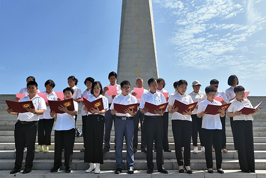 在支部书记朱红涛的带领下,大家在革命烈士纪念碑前,朗诵诗歌《狮脑山——永不忘却的纪念》,讴歌革命先辈的丰功伟绩,表达拳拳爱国之心和爱党之情。