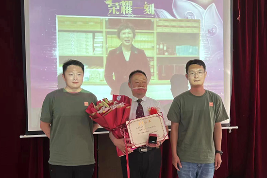 分公司总经理杨帆和分公司员工代表为健康之星颁发荣誉勋章及证书。