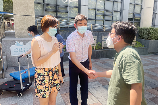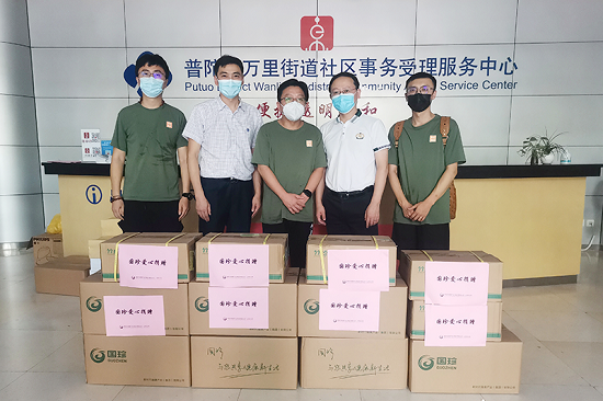 8月4日下午,上海分公司向普陀区万里街道捐赠爱心抗疫物资,并向奋战在疫情防控一线的工作人员致以感谢。万里街道党工委书记韦浩、办事处副主任张嘉钧参加捐赠活动。