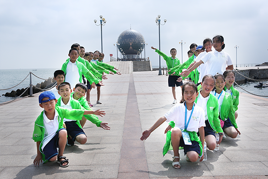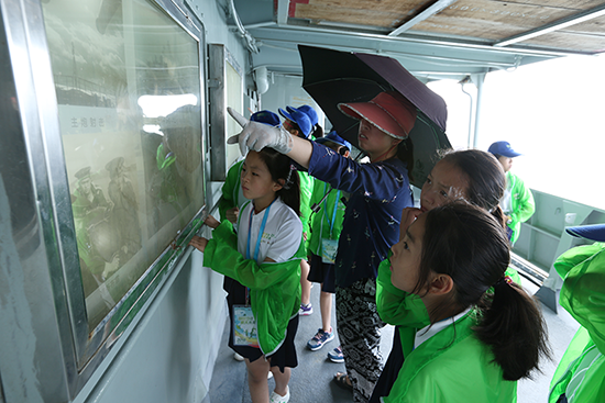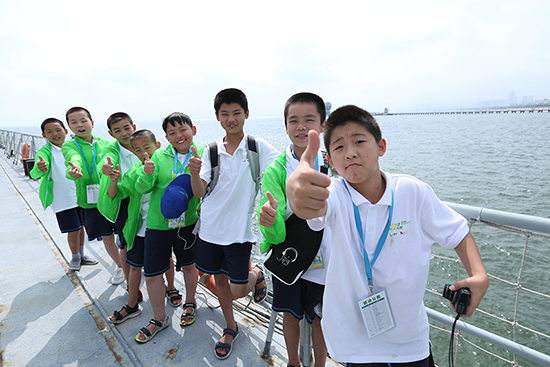 ▲ 国珍希望小学夏令营的师生们参观黄海明珠