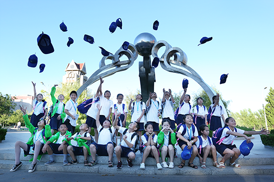 ▲ 国珍希望小学夏令营的师生们来到烟台大学