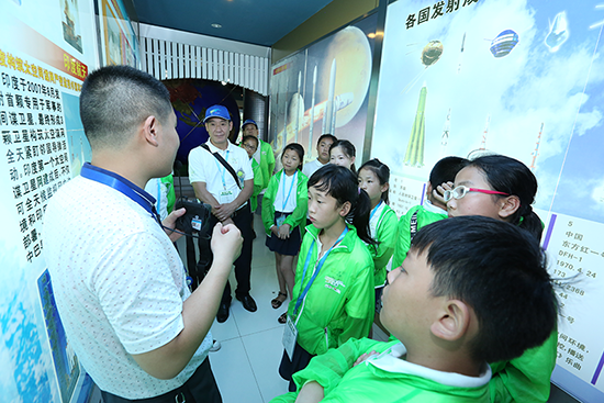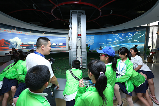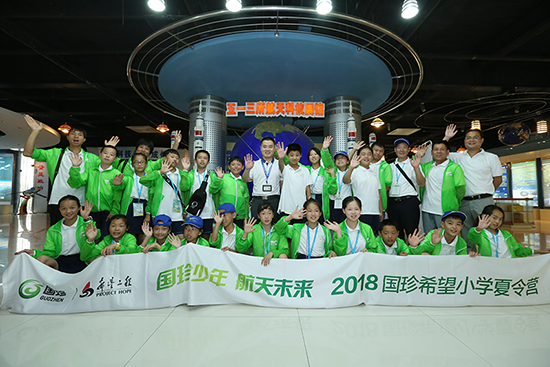 ▲ 国珍希望小学夏令营的师生们参观五一三所航天科技展馆