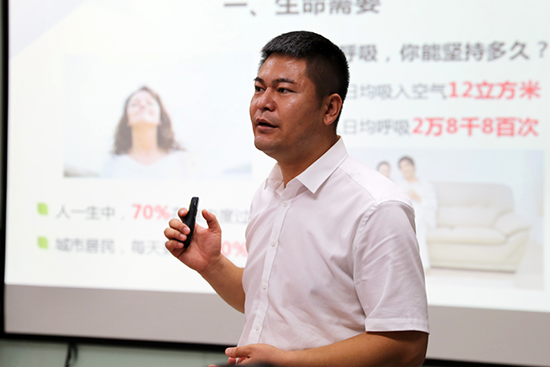 国珍商学院讲师李忠贺介绍“珍世家”空气净化器产品
