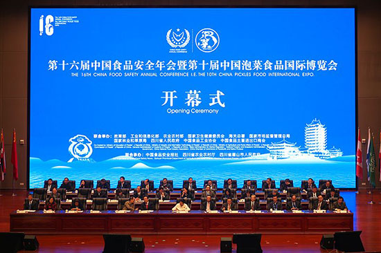 11月13日上午,第十六届中国食品安全年会暨第十届中国泡菜食品国际博览会在四川眉山隆重开幕。