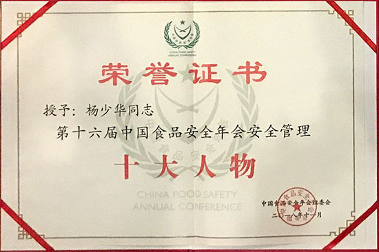本届年会以“实施食品安全战略,推进健康中国建设”为主题,公司由于在食品安全管理、食品科技创新工作中的卓越表现,在本届年会中受到了高度赞扬,并荣获“食品安全管理十佳案例”、“安全管理十强企业”等多项荣誉。