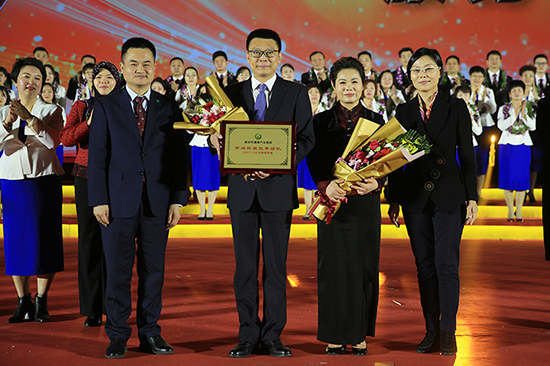 本年度最高荣誉的获得者——新晋五星服务网点负责人冯岩冰、范致钢伉俪携优秀团队伙伴一起登上了授勋舞台,接受公司总经理张红和国内直销事业部总经理杨少华的表彰。同时,冯岩冰率领的团队喜获今年市场拓展优秀团队的称号。