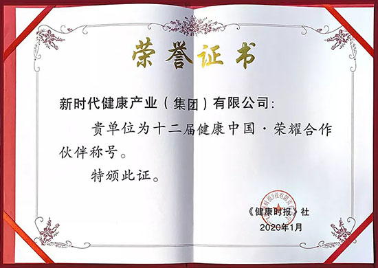 1月9日,由人民日报社指导,人民日报健康客户端、健康时报主办的第十二届健康中国论坛在京举行。新时代健康产业(集团)有限公司国内直销事业部副总经理张凯波出席论坛,并代表公司获颁第十二届健康中国荣耀合作伙伴殊荣。