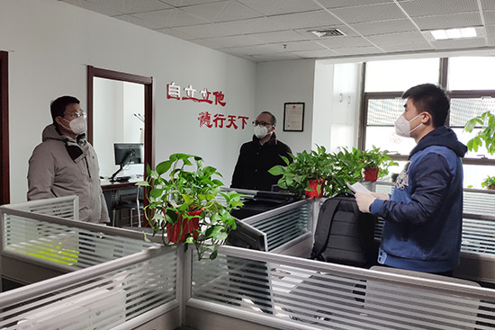 疫情紧急,面对人员少、物流难等困难,党支部书记郭鑫垚亲自从北京总部搬货装车并跟车押运回冀;召集党员群众对口罩配发要求和数量等做详细指导,通过自驾配送、邮寄等各种方式,确保防控工作有效落实。