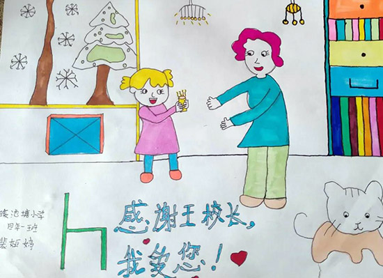 ▲孩子们用绘方式感谢王爱芹校长
