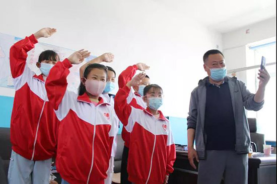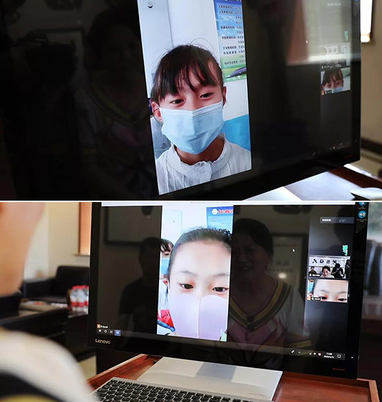 孩子们通过远程连线向杨桂芹校长展示穿上新校服的样子,并送出了亲手制作的手抄画礼物。