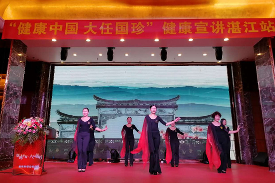 在一曲优雅的《采薇》开场舞蹈之后,广东分公司区域经理胡尔娜为本场活动致辞。她介绍了新时代25年深耕健康产业积蓄的实力,健康科普巡讲活动为推动健康中国全民健康付出的努力,以及湛江市场发展的潜力,并希望大家领会“不忘初心 牢记使命”主题教育暨全国市场发展研讨会会议精神,共创美好新未来。