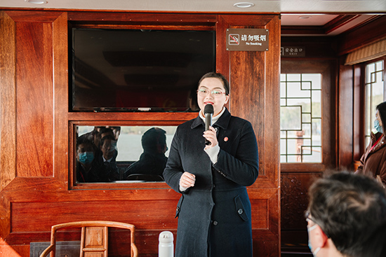 下午,在南湖的微风碧波上,红船干部学院胡文羽老师为大家上了一堂精彩的专题党课,讲述了“红船精神”的深刻内涵,并呼吁各位党员要不忘初心,牢记使命,传承和弘扬“红船精神”,让“红船精神”绽放时代光芒。