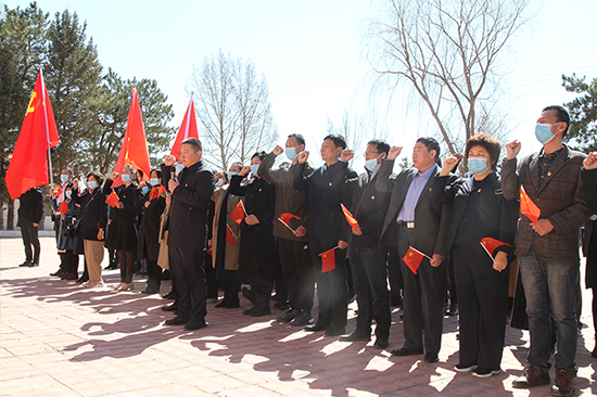 黄勇书记带领党员代表重温入党誓词,鼓舞所有人不忘先烈,珍惜当下,传承和发扬革命烈士不屈不挠的精神,为祖国的繁荣富强而奋斗。