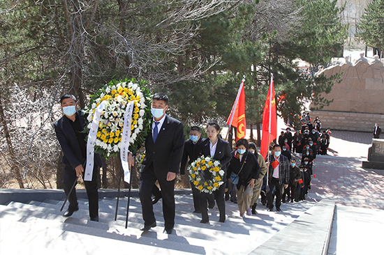 上午,一行人来到赤峰市柴胡栏子烈士陵园,开展缅怀革命先烈传统教育活动,沉痛悼念“柴胡栏子事件”为国捐躯的22名烈士和所有为中华民族解放事业做出贡献的革命先辈。