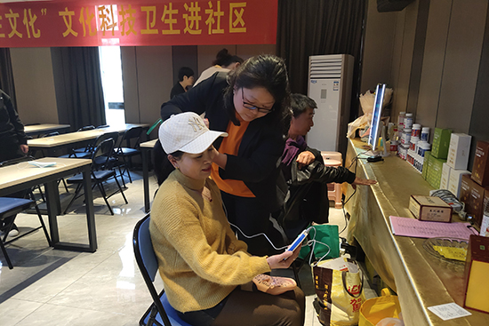 分公司培训师以及当地志愿者运用脉诊仪、健康镜、耳穴仪、扶阳罐等设备,为参会人员提供健康监测和评估、咨询服务,受到大家的广泛欢迎和好评。