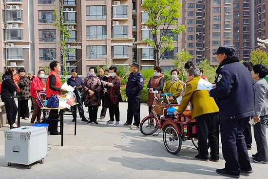 4月15日,山东分公司在济宁金乡金湖康都社区开展“‘践行健康中国战略 弘扬中华养生文化’文化科技卫生进社区”系列活动,向社区居民提供健康知识普及、健康监测等服务。