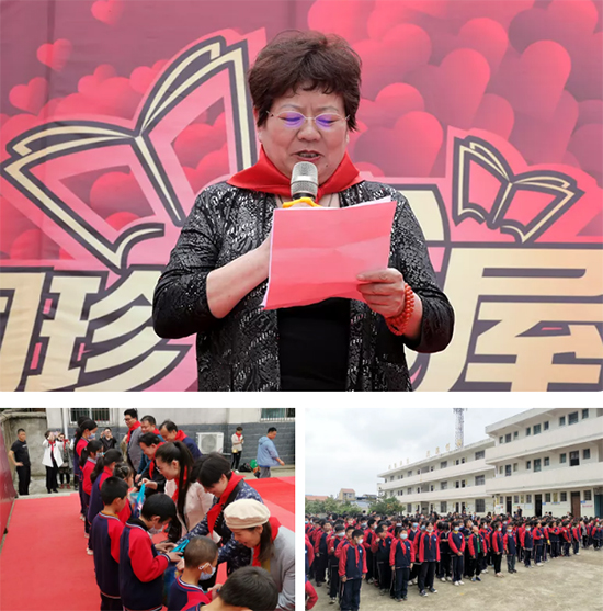 荣誉校长玥茏芯为国珍书屋授牌。荣誉校长刘洵表示,希望孩子们多读书、读好书,珍惜少年时光努力学习,早日成为国家的栋梁之才。