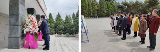大家在烈士纪念碑前肃立,向英勇献身的烈士默哀致敬。随后,党员代表重温入党誓词,并向纪念碑敬献花篮,寄托对先烈们的哀思。