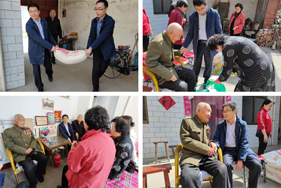 志愿者代表们前往尧都区尧庙镇下靳村老红军张新春家中进行了慰问。张老今年95岁,1944年当兵,参加过解放运城、临汾等战役,并在1949年国庆大典阅兵时作为军乐队队员接受检阅。志愿者们拉着老人的手促膝交谈,仔细询问张老的身体情况,与他一起感怀那段难忘的峥嵘岁月,感谢他为中国革命和民族解放作出的贡献。志愿者们还向张老送上慰问品,并致以最崇高的敬意和美好的祝愿。