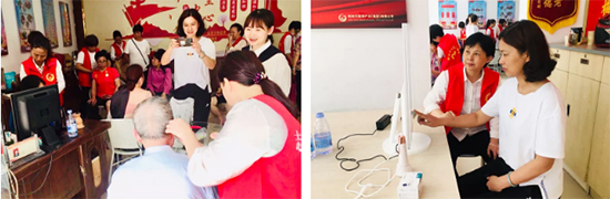 分公司员工与国珍健康生活馆志愿者为街道工作人员、社区居民、劳动模范及道德模范提供健康监测服务,并根据个人健康报告给予个性化的健康指导建议。