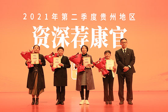 贵州、重庆两省市资深荐康官、优秀健康使者登上舞台,接受荣誉表彰,扎实的业务能力、稳健的工作作风、取得的优异成绩获点赞。